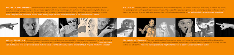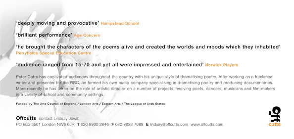 Identity and print items for Offcutts, a vehicle for Peter Cutts, poet, performer and publisher